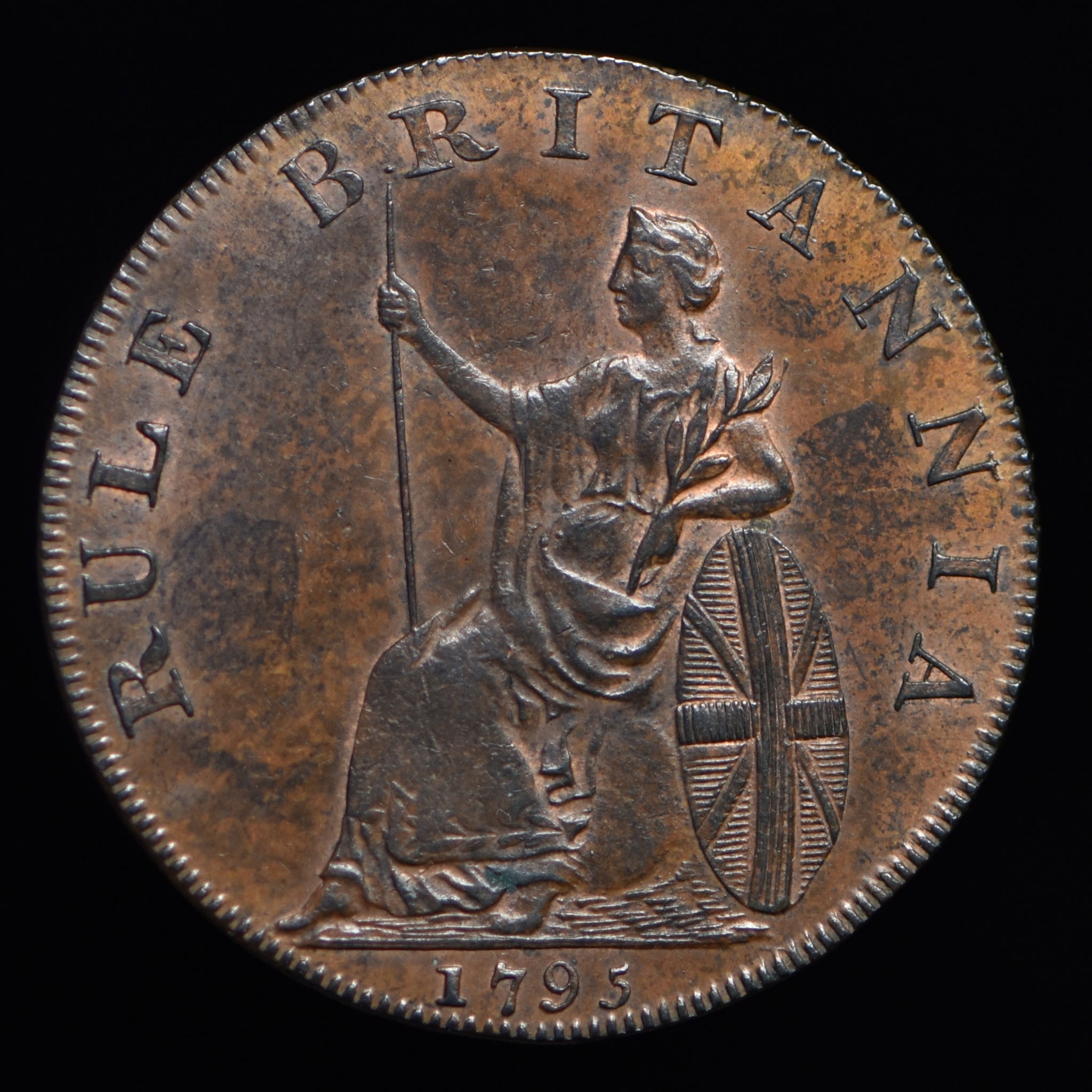 Obv: Bust of John Howard facing left, IOHN HOWARD F.R.S PHILANTHROPIST around. Rev: Britannia seated, RULE BRITANNIA around, 1795 in exergue. Edge: PAYABLE AT THE WAREHOUSE LIVERPOOL.