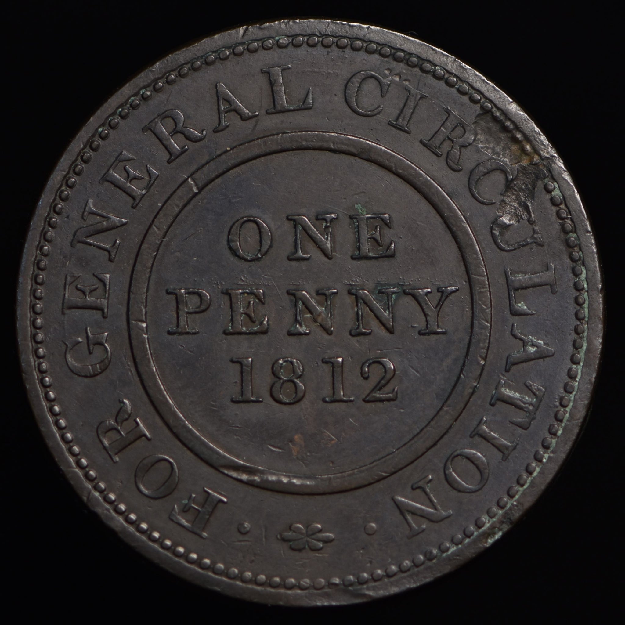 Obv: Crown in center circle, BIRMINGHAM & WARWICKSHIRE around. Rev: ONE PENNY 1812 in center circle, FOR GENERAL CIRCULATION around. Edge: Center grained.