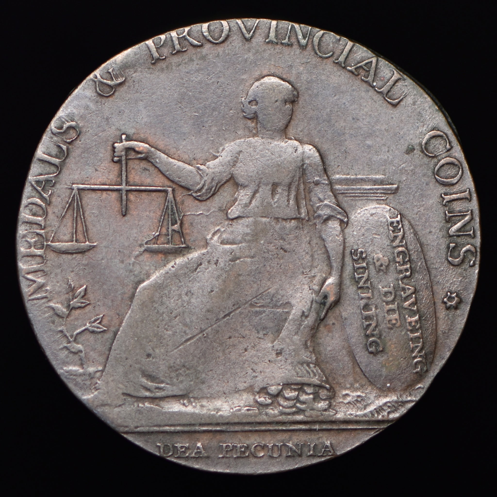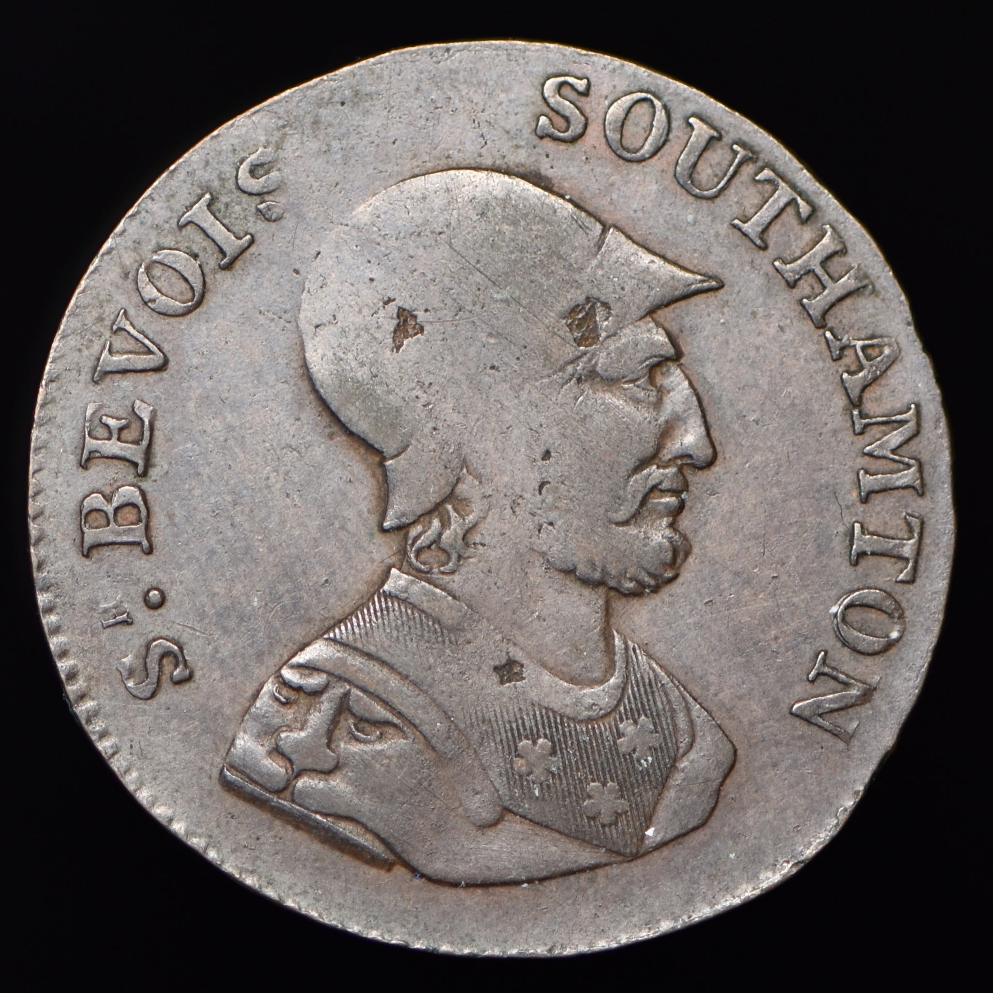Obv: Bust of Sir Bevois, SR. BEVOIS SOUTHAMPTON around. Rev: Justice seated, MEDALS & PROVINCIAL COINS around. Edge: Plain.